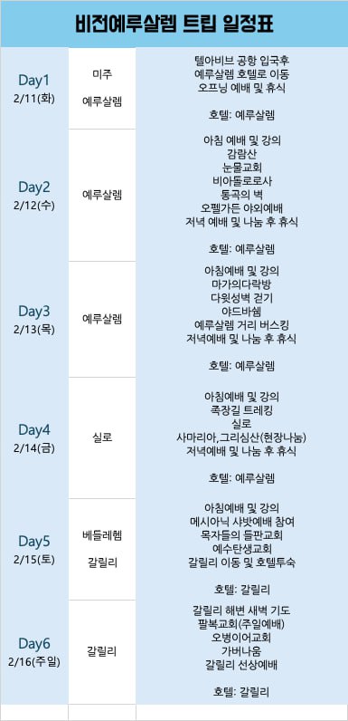 비전 예루살렘 트립을 통해서 각자에게 말씀하시는 회복과 비전의 시간이 될것입니다.